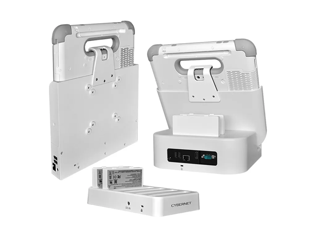Use the RX Medical Tablet like a computer on its own desktop docking station with a convenient tilt function allowing you to tilt the face of the tablet for ease of use. The desktop docking station recharges the batteries on the tablet and also comes with a two battery charging cradle so you can easily hot swap the tablet’s batteries.