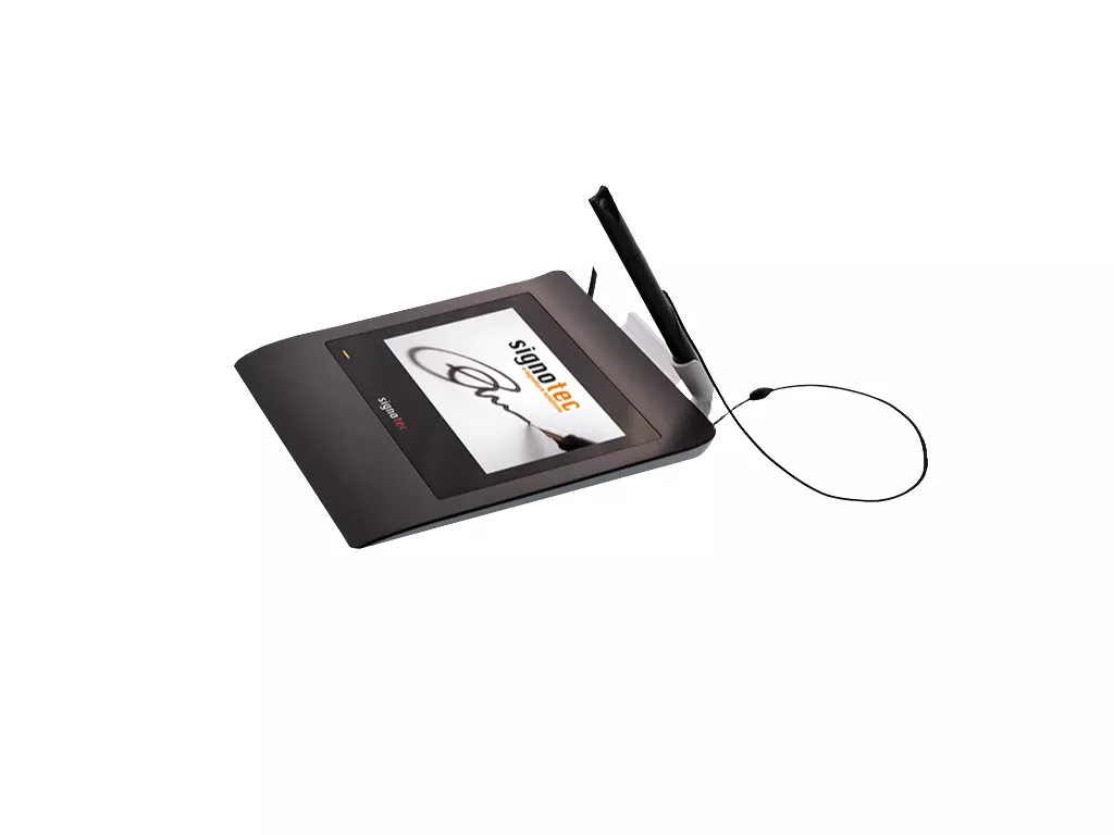 signotec Gamma signature pad developed and produced entirely by signotec itself, “Made in Germany”, with an unsurpassed price-performance ratio. It is particularly compact with its external dimensions of 145 x 177 x 12 mm and sets new standards in terms of design and functionality, so that you can set clear accents at your POS with this device.