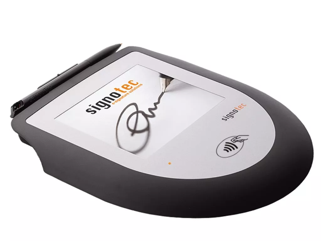 Like all models of the signotec signature pads, the signotec Omega was developed entirely in-house “Made in Germany “, combining decades of experience and competence. Furthermore, all signature pads have unique security features, such as the signature and RSA encryption in the pad’s secure memory. Due to the flat surface without edges between sensor and housing, all pads offer an extremely comfortable signing experience.