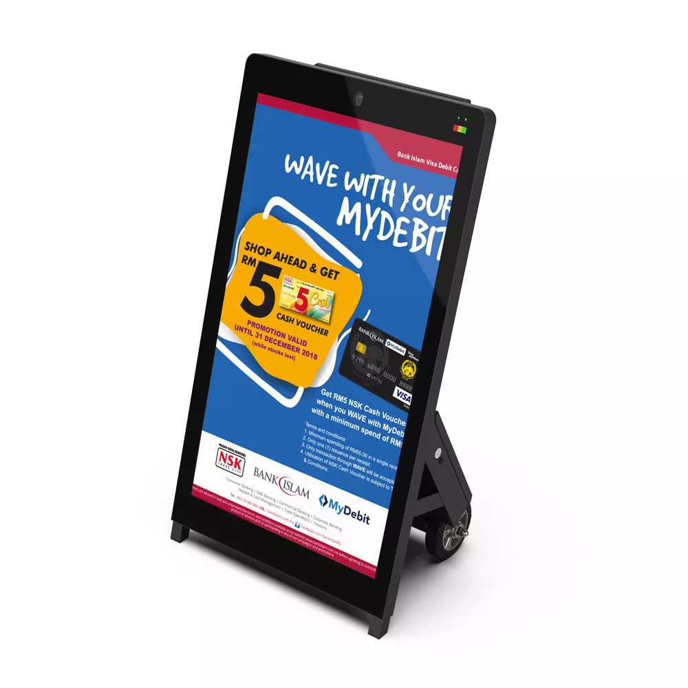 - Portable battery powered signs for exhibitions, car showrooms, restaurant menu boards, etc