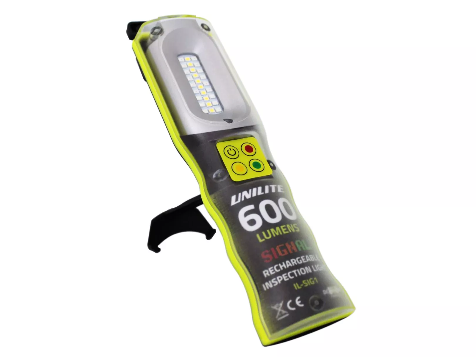 With Unilites heritage as an industrial torch manufacturer, the IL-SIG1s construction is understandably robust. Its housing has been made from ultra-strength polycarbonate, keeping it safe and secure when in operation and giving it a 1m impact resistance. Built into its housing is an ultra-strong magnetic hook, providing a versatile tool which allows for hands free operation. If the unit is being used at a floor level, then the multi positional kickstand can be deployed, keeping it well positioned to deliver a strong spread of light.